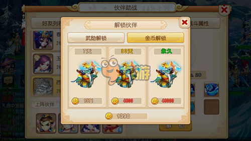 解锁分为两种方式,武勋解锁和金币解锁,武勋小熊还没有开启,估计是竞技场比武获得的竞技点;金币是仅次于仙元的流通道具,永久解锁需要4W8金币,一周七天需要1371金币,算一下1元钱=1仙玉,100仙玉=10000金币,也就是大概10多块钱可以用一周吧,虽然不算多,可是也不算少啊!