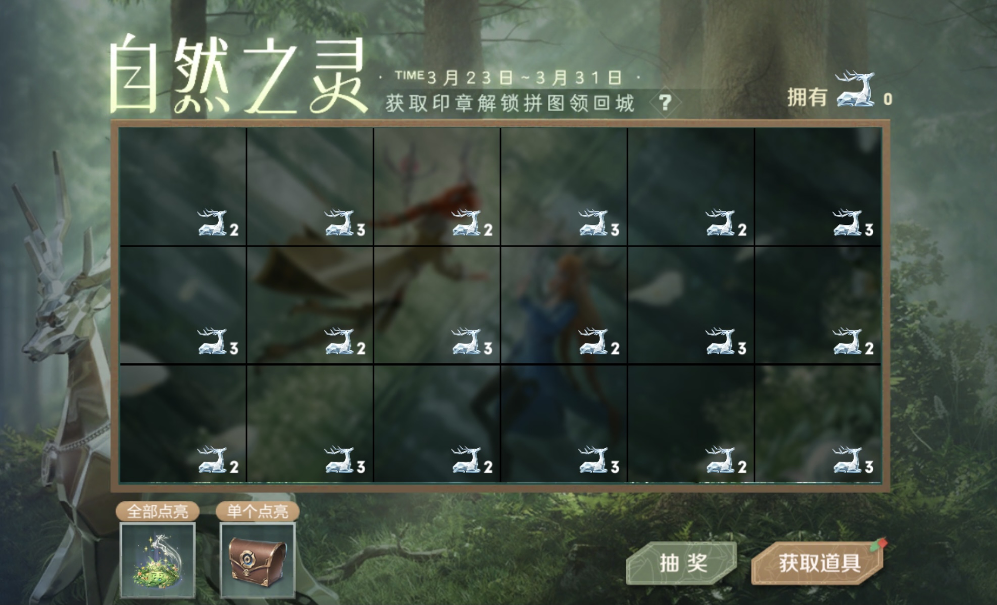 自然拼图活动的系统任务是什么:本次活动的任务是以每日刷新的形式来发布的,因此玩家们需要抓紧时间完成任务,如果错过了的话就会导致无法获得一部分的鹿灵道具,而鹿灵道具收集不到足够的数量,就无法兑换最终的活动奖励。本次的自然之灵拼图总共有18块,部分拼图需要2个鹿灵道具点亮,而另一部分的拼图需要3个鹿灵道具点亮,也就是说,玩家们需要收集到45个鹿灵道具才可以点亮所有的拼图,领取永久回城特效。