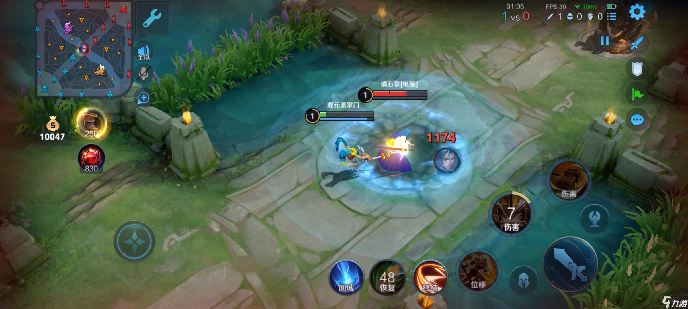 钟无艳这个英雄前期的二技能伤害非常高,买完一把小铁剑后,一个二技能就可以砸1000多点伤害(如下图)。