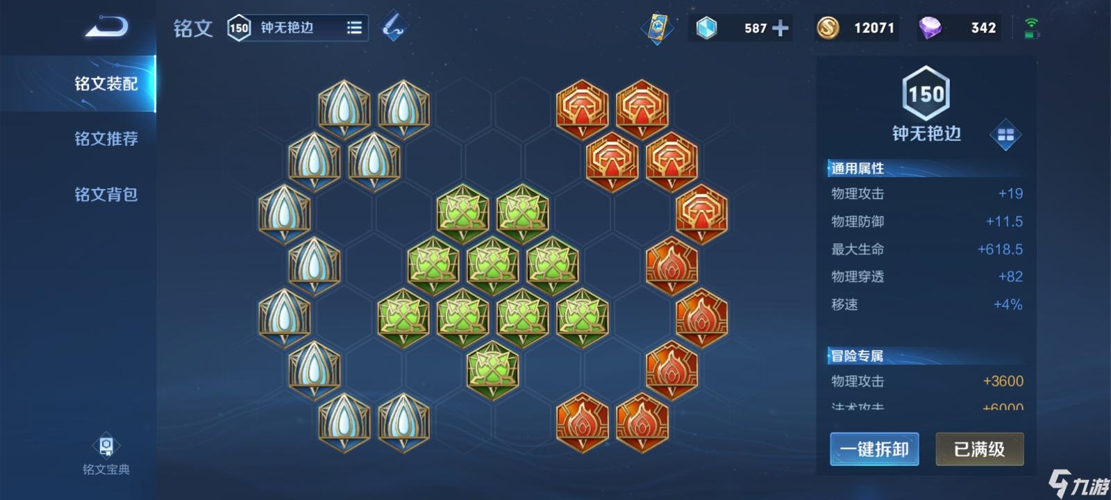 铭文方面推荐佩戴十调和,十鹰眼,五宿命,五异变。这套铭文能抗能打,物理穿透极高,在这种坦边横行的年代很吃香。作为一个坦克,钟无艳自然也不能忘本,这套铭文高达600+的血量加持,对钟无艳的收益很高。