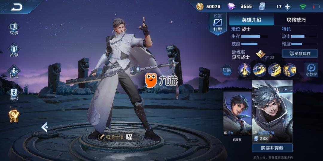 王者荣耀东方曜伴生皮肤归墟梦演和以往上线的新英雄的皮肤一样,只要288点卷。