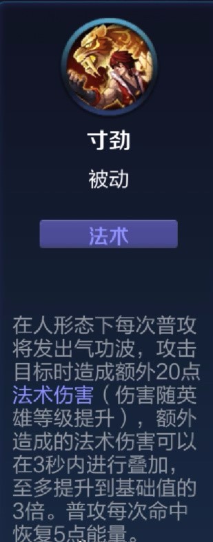 寸劲,普通攻击附带一次额外的法术伤害,在3秒内最高叠加到基础伤害的3倍。