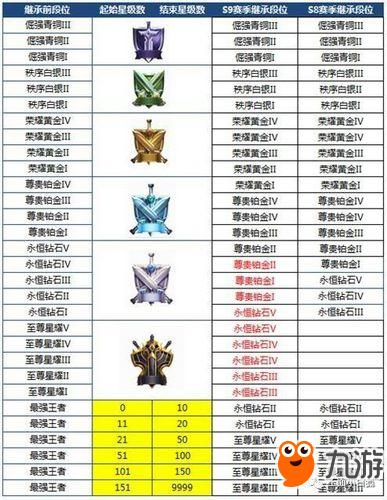 距离S10赛季不到两周,很多小伙伴都在关心段位继承这个事,策划也没有对新赛季段位继承的相关讨论。如果不出意外的话,段位继承制度照旧,S9赛季如何继承,S10赛季就如何继承。第一竖排是当前段位,第三竖排是S10赛季的新段位,自己根据具体段位对一对即可,最终以正式服为准。