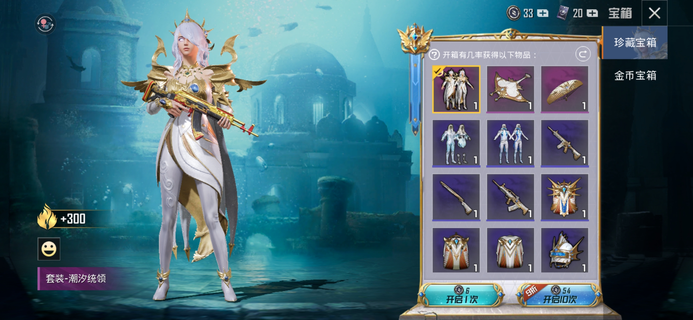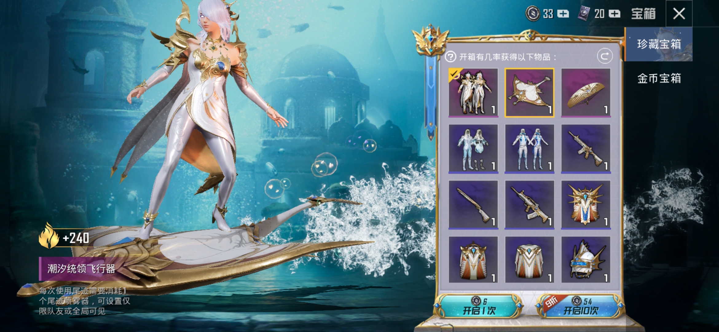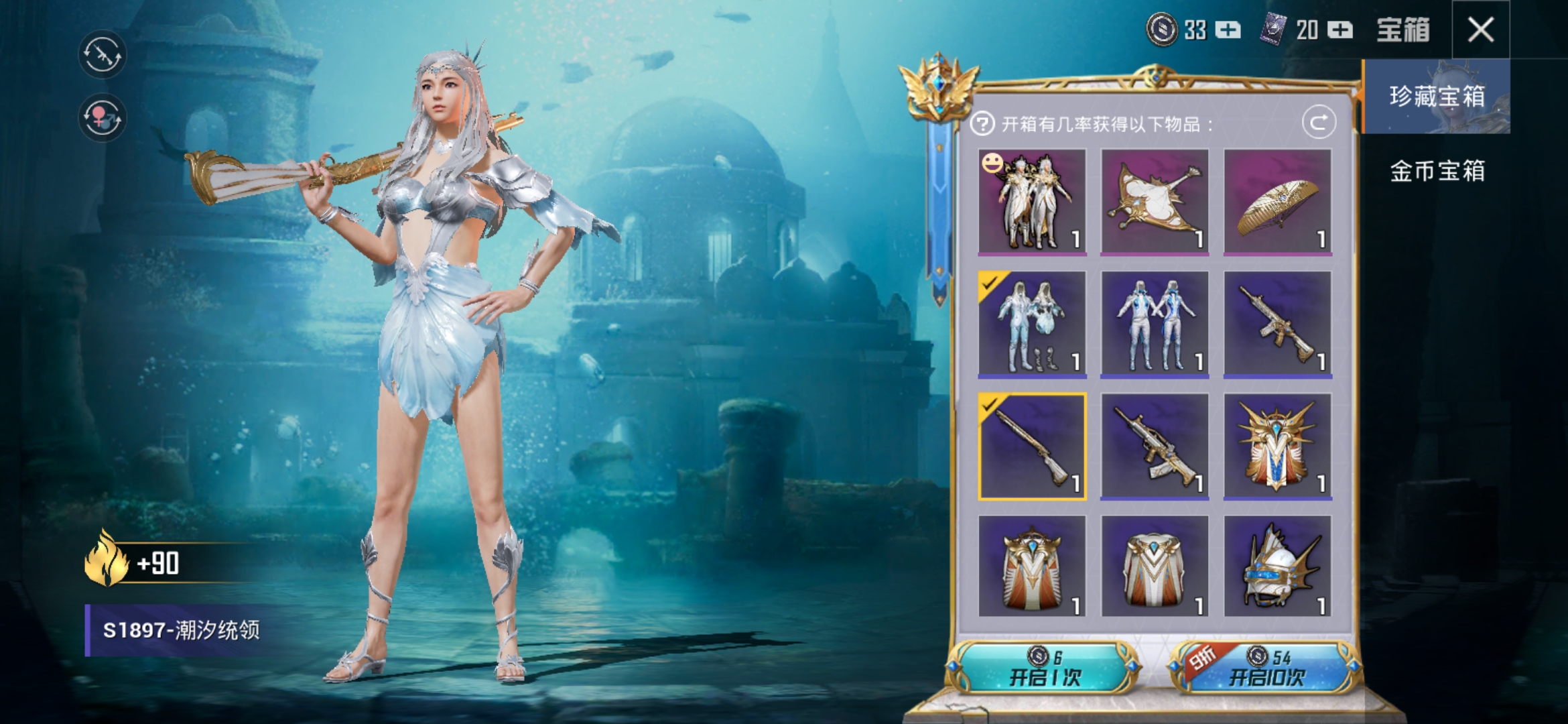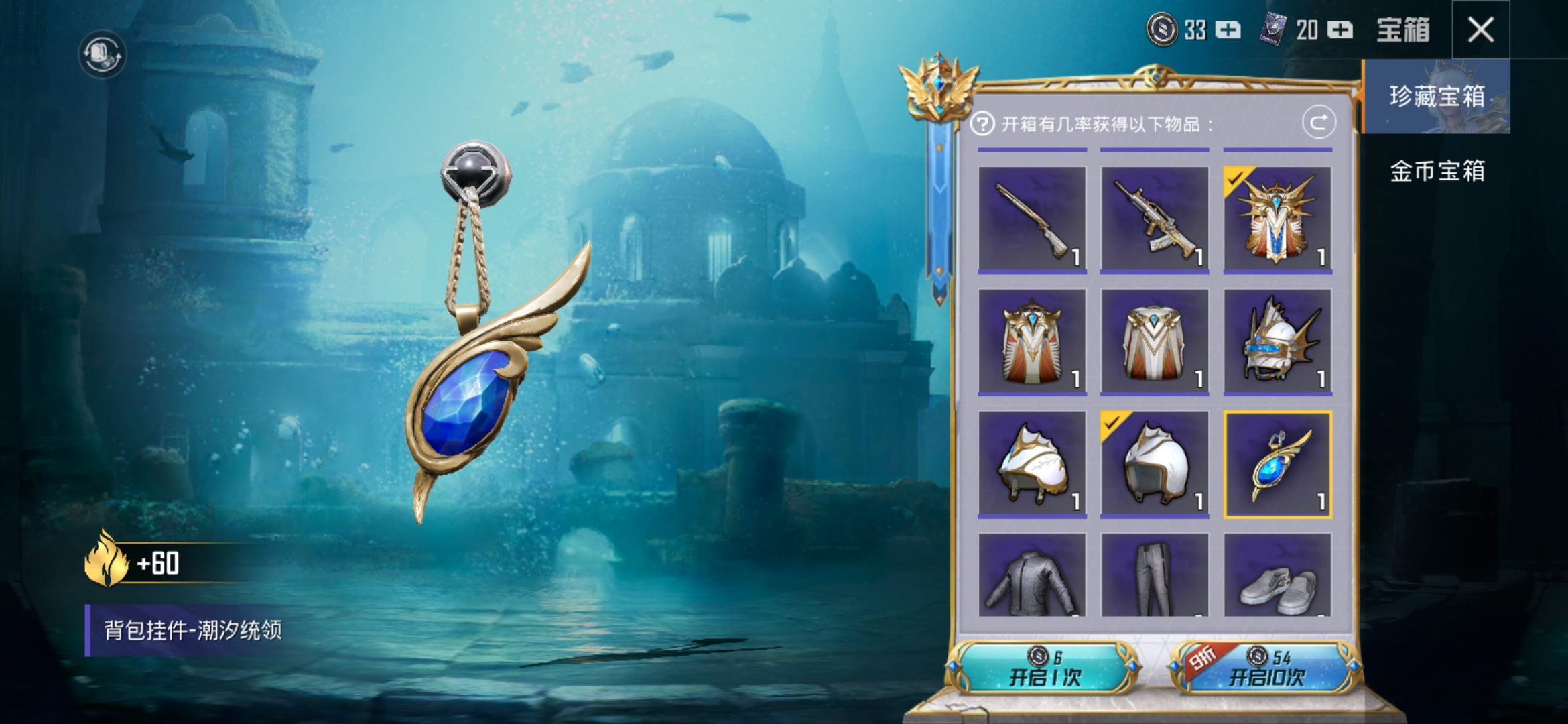 如果玩家对潮汐统领皮肤感兴趣,可以消耗6个荣耀勋章换取一次开启机会,购买6个荣耀勋章需要消耗60张点券。玩家也可以选择开启10次,还会有9折优惠,只需消耗54个荣耀勋章,也就是540张点券。