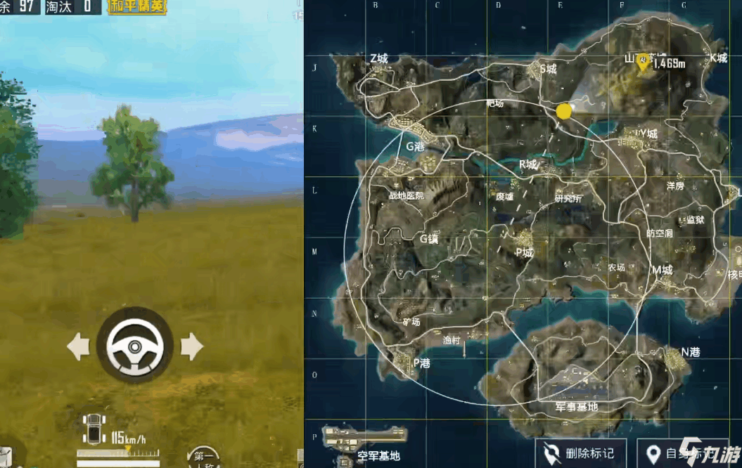 然后是经典的海岛模式,在赛季初期海岛里车队较多,所以尽量不要跳到热门的城区,我们可以先选择跳到野区,寻找车辆转移到离航线较远的城区搜索物资,多带一点油。