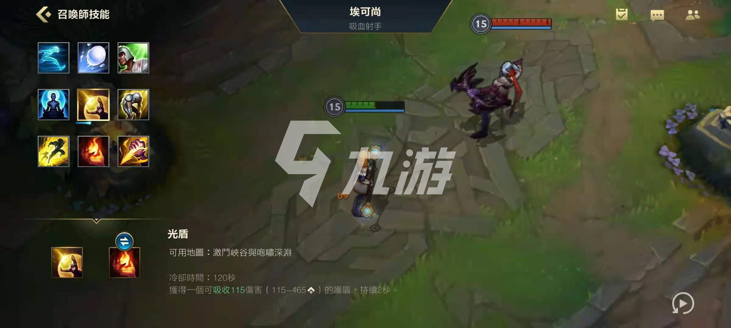 当前版本屏障可抵挡115-465的伤害,引燃可以造成60-410的伤害,其中屏障是可以抵挡引燃伤害的。可以说现版本屏障极其克制引燃,所以闪现+屏障算是针对闪现+引燃的带法。另外屏障在残血时使用往往能出乎敌人的意料,经常能打出反杀。