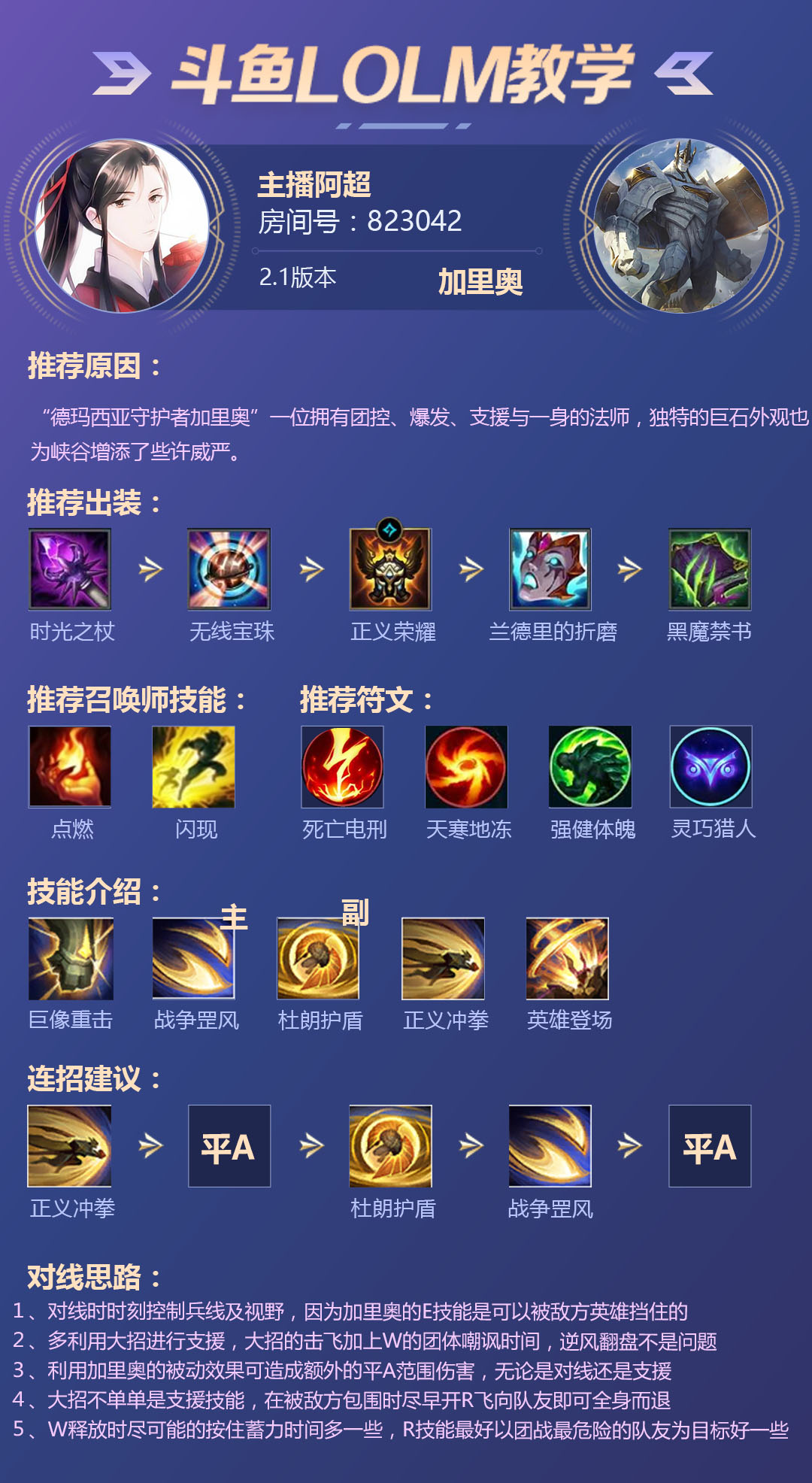 德玛西亚守护者加里奥教学攻略,团控爆发支援连招教学