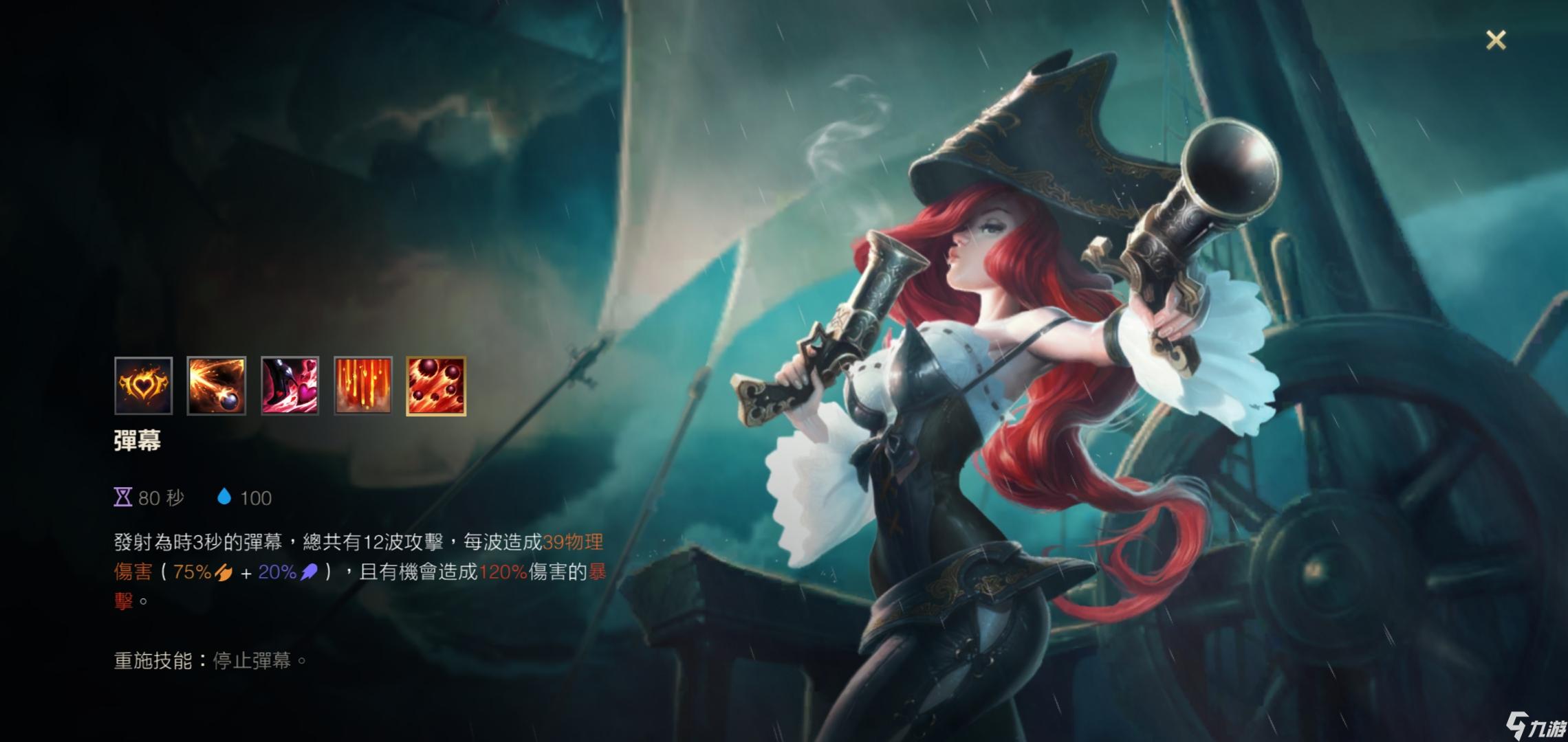这个技能是赏金的减速技能,赏金在地上打出一个圆形的枪林弹雨阵,对弹阵内的敌人造成魔法伤害和减速。