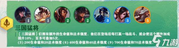 「三国猛将」 英雄们每次登场并获胜后会获得额外的生命值&法术强度,可叠加至5次。