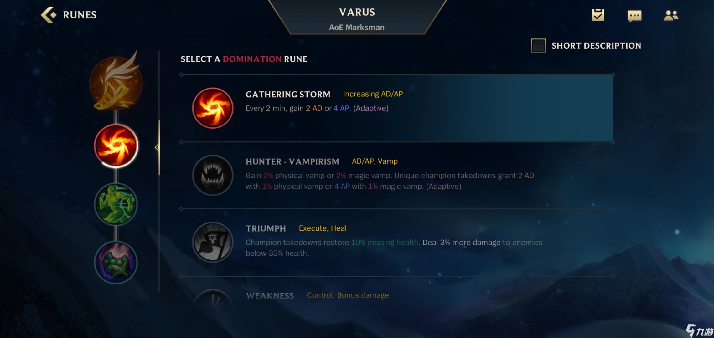 而副系小编推荐带坚毅、风暴聚集和甜食派。坚毅给韦鲁斯带来的收益是增强最少的属性类型,获得10点的提升。能提高韦鲁斯线上的抗揍能力,不至于血线被消耗得太厉害。
