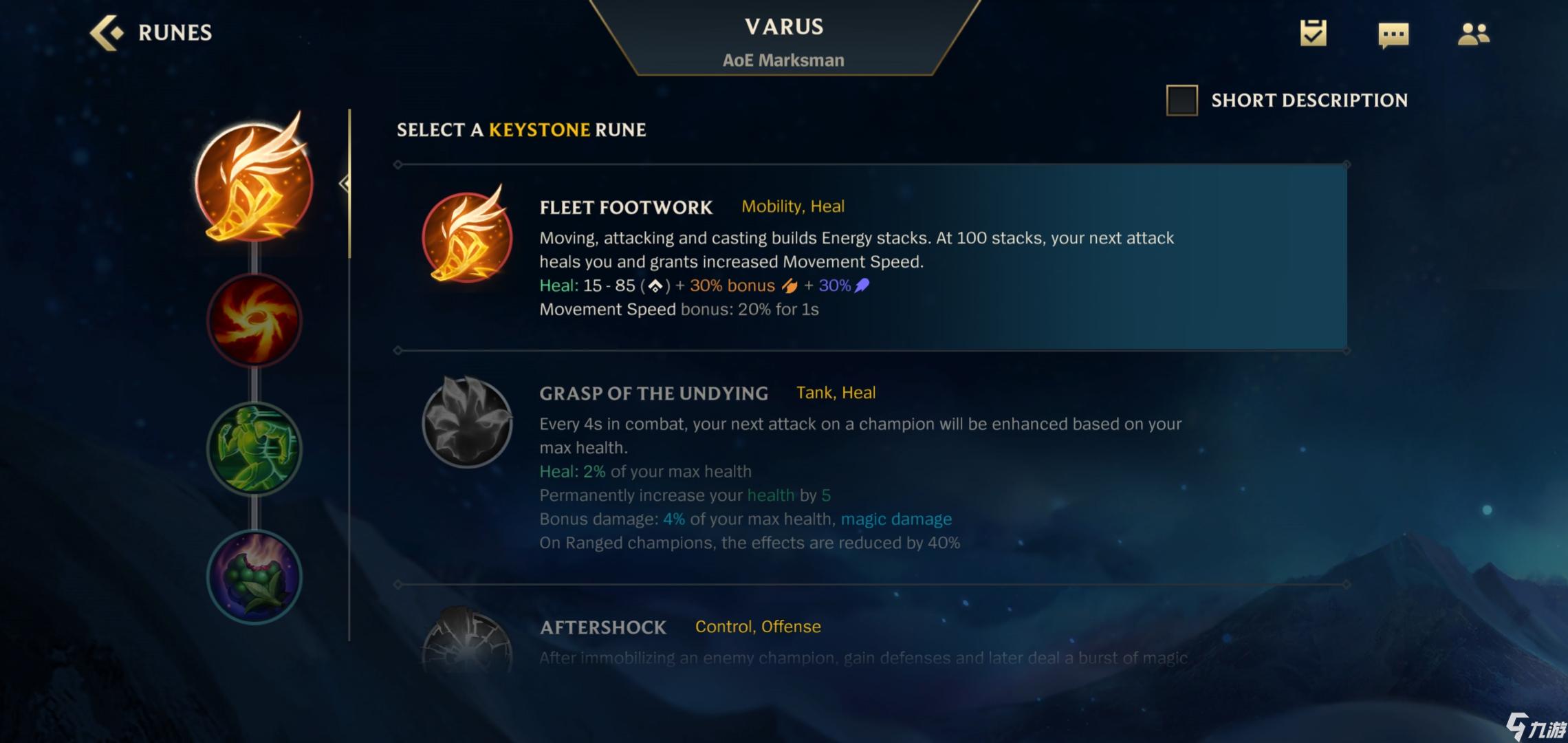 或者也可以选择带迅捷步伐,因为韦鲁斯前期的伤害已经很高了,但是却没有位移来增强走位,所以迅捷步伐能够很好的增强减速抗性,让韦鲁斯在受到敌方减速技能的时候不那么难受。