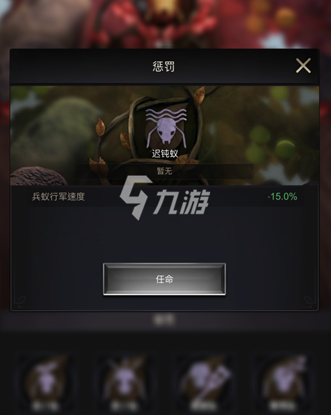 病蚁——部队攻击-8%,部队防御-8%。巢穴防御力降低,侵略能力降低。