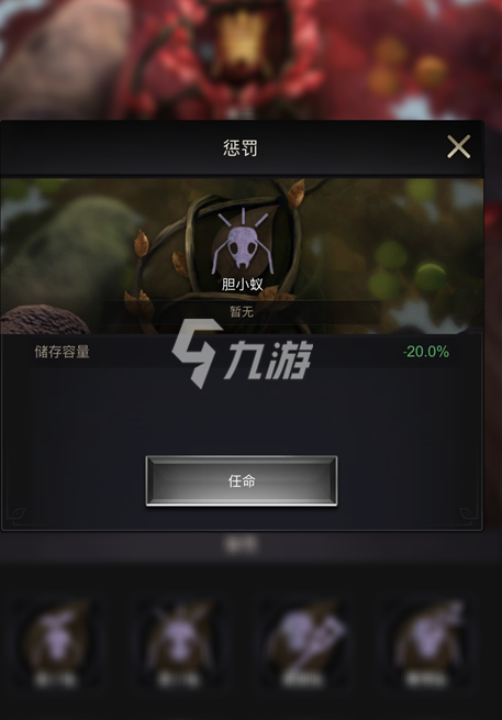 当统领通过区域最强战争获得胜利后,就会被任命为蚁王,在蚁王的任期内,可以在丰饶之地,点击职位按钮对区域内的蚂蚁进行奖励与惩罚,每个惩罚类型的蚂蚁只能有一只,也就是说蚁王可以惩罚8只蚂蚁统领。当下一任蚁王任期开始前惩罚都会具有效果。