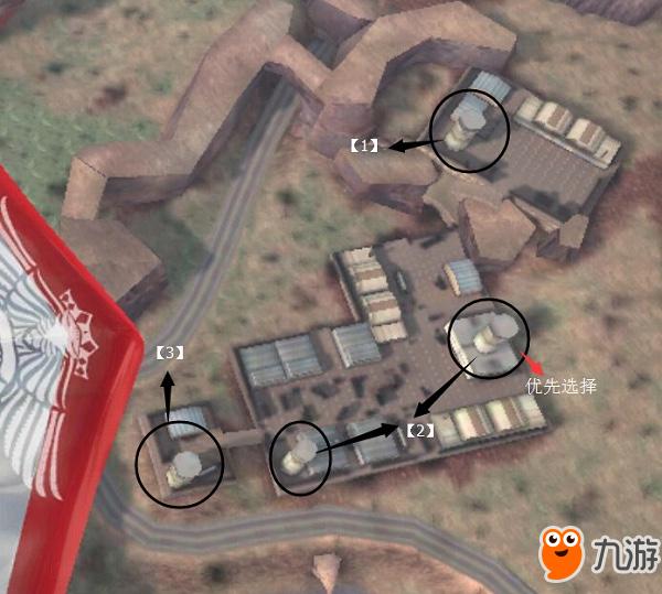 当我们和队友同时到位了,这时候,就可以开始我们的称霸“盘龙基地”之旅了,如图中所示,三个灯塔遥相呼应,第一标记点和第三标记点灯塔的位置,能够俯瞰整个“盘龙基地”,而第二标记点灯塔位置能帮助我们第一和第三标记点的灯塔进行防守,以及攻击第一第三灯塔攻击不到的死角。