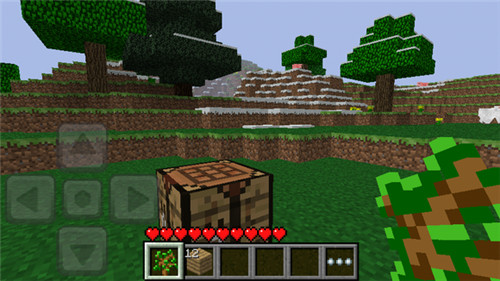 游戏中最主要的操作键便是左下方的移动虚拟键,以及游戏正下方的物品栏、合成操作键。好吧,再告诉你个小秘密,游戏中的用餐、砍树、挖矿等生活操作只要通过长按屏幕便可完成,基本操作介绍完毕。看着这么简单的操作,是不是突然对于在游戏里面做个上帝信心满满了呢?