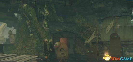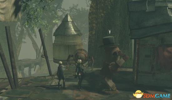 当剧情进行到一片森林建筑时,你会发现这里的机械生命体有着更加类人的行为习惯。例如,这里的机械生命体会如同人类一般居住在树屋之中;机械生命体其实是一种群居生命;机械生命体会在打不过的时候举白旗投降;机械生命体也有爱美之心——化妆。